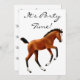 Original fine art design of a frisky bay foal by designer Carolyn McFann of Two Purring Cats Studio on a fully customizable invitation for horse lovers.