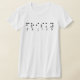 The material is a great quality that is hard to find with most tee shirts. Fabric was not see-through or thin at all, but was also very soft and comfortable. The shirt description states that it runs a little small, so I sized up one size for a perfect fit! I would definitely buy this type of tee shirt again because I love the fit and high quality fabric that I cannot find anywhere else. The printing was perfect and just as pictured. Loved the cute quote and really enjoy the tee in both the quality and design. I love quirky typography designs and funny quotes and I am extremely pleased with the overall quality and value I get at Zazzle!