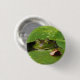 This button features a green frog peering out at the photographer from under his lily pads. It has just stopped raining. Sun is reflected on the water droplets. The size of the fallen leaf demonstrates just how small this little guy is.