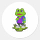 Frog as Hiker with Backpack Classic Round Sticker
