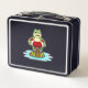 This is a standard metal lunchbox that appears to work just fine. We designed this box ourselves with an uploaded photo and custom text on the front and back. It looks absolutely beautiful except the front of the lunchbox is not centered like it shows in the photo. The print borders don't align with the inset flat part of the box where the preview photo online showed it perfectly centered in there. The back looks nice and centered though.
