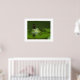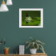 Poster is shown with a photo print of a frog in the pond with a butterfly on it's head.