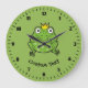 Green frog cartoon with golden crown. Prince frog. Custom background color. Custom text.