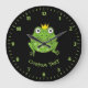 Green frog cartoon with golden crown. Prince frog. Custom background color. Custom text.