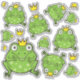 Green frog cartoon with golden crown. Prince frog. Contour sticker set.