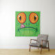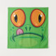 A cartoonish depiction features a funny green frog face with large expressive orange eyes and a cheeky tongue sticking out. The playful design incorporates simple shapes and bright colors to create a fun and quirky expression. Great gift for frog lovers. Perfect present for amphibian fans. Tags: frog, toad, amphibian, funny, mouth, tongue, cartoon, bullfrog, tree frog, cute, frown, animal, wacky, green, orange, croak, playful, quirky, expression, fun