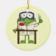 A green frog with safety goggles and a white lab coat does some experimenting in the lab on Frog in the Lab T-shirts, mugs, cards, stickers, tote bags, keychains, magnets, ornaments, and other science theme apparel and gifts.