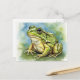 This charming postcard features a detailed watercolor illustration of a green frog with striking golden eyes. Sitting calmly against a soft, nature-inspired background, the frog’s lifelike details capture its gentle yet curious character. Perfect for nature lovers, animal enthusiasts, and postcard collectors, this design brings a touch of the outdoors into your mailbox. Whether sent for Postcrossing, kept as part of a collection, or given as a gift, it’s sure to bring a smile to the recipient’s face.