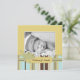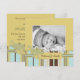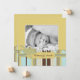 Sweet 3D-look polka dot print frog with button eyes leaping over a name tag and stripe scallop and ribbon trims square photo card.