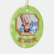 "Our Little Prince" photo keepsake ornament with cute cartoon frog and crown. Adjust text for "baby's first Christmas" or any occasion.