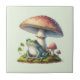 Frog Under a Mushroom Cute Nature Ceramic Tile