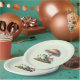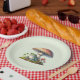 Paper plates with a cool illustration. Featuring a green frog sitting on a mound of grass. A big red mushroom sheltering him from the elements. A couple of little toadstools nearby.
