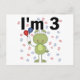 An adorable 3rd birthday design on 3rd birthday T-shirts, cards, stickers, magnets, tote bags, and more featuring a green frog with birthday balloons and text that reads "I'm 3".