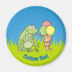 Smiling frog steals an ice-cream cone with his tongue. Custom text.