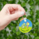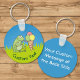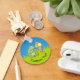 Smiling frog on grass steals an ice-cream cone with his tongue. Custom text on both sides.