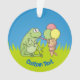 Smiling frog steals an ice-cream cone with his tongue. Custom text on both sides.