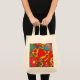 The printing came out very well, better than I had anticipated. The natural color fabric is sturdy with strong seams and comfortable handles. This tote fits easily over my shoulder. As it is filled, the bottom flattens out--very cool! I would buy this product again. This grocery tote holds a lot of groceries! The image quality was very good. The colors were a little darker than I had expected. The darkness may have been due to printing on a natural color fabric rather than on white. The cat design is attractively centered on the tote. The spirit of the design is very lively, just as it appears on the Zazzle website.