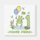 First Birthday cute green jumping frog with pond, cattails, dragonflies and balloons. Text reads "I'm 1". Toads, frogs and things amphibian.