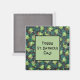Square magnet with an image of dark green shamrocks and whimsical green frogs, some just sitting, some playing the violin, and some drinking beer, on black. Green square has a black border and a customizable sentiment. See the entire St. Patrick's Day Magnet collection in the PARTY FAVORS section.
