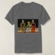 My 11 yo wore adult XL (5’7” 165#). The 8yo is small framed. She wore adult small and tied it in the back. Grandma wore adult large with long sleeve shirt underneath. Tall girl adult medium. Dark haired male adult large. Good quality dark Heather gray, Gildan brand shirt. -it was next up from basic choice and cost about $20 per shirt. Not too thick or thin. Washed and dried well, no major shrinkage. Not see-through. Can wear a bra under it fine. Screen print is just as shown and well done, front and back.
