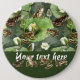 Frogs green and white water lilies pattern button