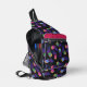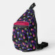 Frolf - Flaming Disc Golf sling bag. A bag with background of chains with flying flaming disks in pink, blue and green colors. A great sling bag for someone that is a Frolf fan.
