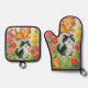 Frolicking Country Cats in Flower Garden Oven Mitt & Pot Holder Set