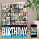 Create your own big happy birthday card. The photo template is ready for you to add 31 of your favorite pictures, 30 of which are displayed in square / instagram format in a simple grid style photo collage and the main one is in frameworthy portrait format on the inside. The front of the birthday card is lettered with modern oversized typography and brush script. It currently reads "happy birthday from all of us" with color block styling in turquoise blue, black and white. You can edit the personalized wording if you wish and you can also customize the greeting inside. Perfect for family, friend, work colleague, community resident, club member .. or any time you want to send a big birthday card from all of us!
