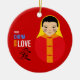 "From China with Love" claims this celebration of International Adoption from China. A cute little Chinese boy decorates this charming ornament which emphasizes the special place that the new child will hold in their forever family's hearts. This charming and customizable adoption keepsake ornament that says "Love" in Chinese kanji characters on the front and "Hello" (Ni Hao) on the back with their name, birth and adoption dates and the Chinese proverb about the red thread that ties us together.