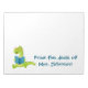 Cute personalized dinosaur Notes for elementary school teachers and librarians. Featuring a green dinosaur with red glasses reading a blue book. Add your name. You can change the font style/text/colors using the EDIT button.