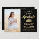 Share the joy of a high school or college graduation with these custom photo black and gold announcements. (IMAGE PLACEMENT TIP: An easy way to center a picture exactly how you want is to crop it before uploading to the Zazzle website.) This template is simple to customize with any wording of your choice, such as party invitation details, parents' names, special honors, degree title, favorite inspirational quote, graduate's contact info, future education plans, or new job position. If there's any text not wanted simply delete it. Design features a faux gold foil mortar board cap, handwritten style script calligraphy, modern minimalist typography, and one photo of your choice, such as a senior picture or image from the commencement ceremony. Please note that gold is printed color, not metallic foil. These elegant graduation announcement cards are a trendy and chic way to share your special day celebration with family and friends. Congratulations to the graduate!