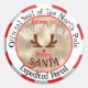 These festive custom stickers feature an outer frame with swirled a red and white peppermint candy cane design. The special phrase "Official Seal of the North Pole" is printed at the top. A custom name is printed at the top which you can personalize to include your own child's name or recipient. "From Santa" is printed in the bottom portion with the letters in the name "Santa" printed in a Christmas style font. Expedited Parcel is printed below over a faux gold foil background. Rudolph the reindeer antlers and red nose are printed in the back.