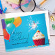 Wish Happy Birthday to your students with this personalized postcard. Birthday cupcake with balloons and script and modern lettering. Blank back postcard to write a note.
