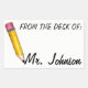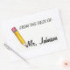 Design features an original marker illustration of a sharp yellow #2 pencil with a pink eraser. Simply personalize with your teacher's information.