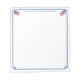 A stylish notepad that you can personalize with your own text including a name. The design features a Greek Key corner border with watercolor USA flag images (these were originally handpainted by me before being scanned into digital form). . You can change the color of the border (currently a mid blue) by changing the background color of the page. You can change the color of the text or the font style in a similar way. To make these advanced edits, "click / tap to personalize further" underneath where you enter your text.