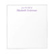 from the desk of appears in an elegant script above the non-script text for your name. The text is royal purple and can be edited or deleted. The notepad is white.