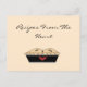 Recipe cards can be used to personalize your very own style of recipe collection. Combined with our ever growing line of recipe binders and pages, mix and match to personalize and create your own style of cookbook. Use the custom wording template to personalize with your own text. This recipe card features a scrumptious over baked pie nestled in a black pie plate with a red heart symbol on the pie plate. Recipe cards feature spaced lines for easy writing.