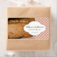 This rectangular sticker is ideal for the baker that specialize in cookies. The sticker features a photo of delicious ginger cookies and light brown polka dots on a light pink background. Customize this trendy sticker to fit your needs.
