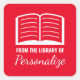From the library of custom name bookplate labels. Square sticker with modern open book logo. Red or custom color. Add your own text i.e. This book belongs to. Custom bookplate labels personalized with names . Useful back to school supplies for kids. Available in square and other shapes. Handy for child, parents, teacher etc. Grammar / elementary school accessories.