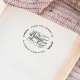 Self-inking book stamps for your personal library, school books, notebooks, notepads, and journals. This simple design features a drawing of a stack of four books with classic spine designs. On either side of the illustration, there is a botanical sprig. Above and below the books, there is "from the library of" and your custom name in curved text, creating a round border. Personalize this template by clicking the button on the right-hand side of the stamp image. Choose the housing and ink colors of this self-inking stamp to suit your needs. Different sizes are available, but please note, the stamps are made as you see them on your screen when purchasing, so be sure that none of the images or text are cut off. A wooden version of this stamp is available in my store. Browse the collection below the product image for more book stamps.