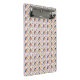 Front and back view of a clipboard with a vibrant, multicolored geometric pattern featuring circles and diamonds on a white background.