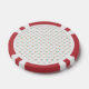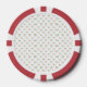 Front and back view of a poker chip with a red and white border. The center has a pattern of small, colorful candy canes, giving a festive feel.