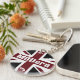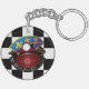 New Orleans Scooter Girls round keychain, Logo over checkerboard on one side, MODern black-Jack design on the other.