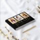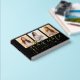 Add an elegant personalized touch to college or high school graduation party decorations with a custom 4 photo black and gold foil guest book. The pictures and all wording on this template are simple to customize, including congratulations message from parents on back. The interior pages can be lined or blank for use as a scrapbook, notebook or journal. The front, back and spine are embossed with real metallic foil. The black and gold design features chic trendy script calligraphy, stylish modern minimalist typography, and four pictures of your choice, such as senior pictures or images from the commencement ceremony. This unique guest book makes an elegant keepsake graduation gift idea. Congratulations to the graduate!
