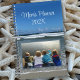 Ocean view, spiral bound planner with horizontal (landscape) photo template on the front. Blue sky and waves rolling in on a sandy beach is the photo behind your picture. Customize with a title, such as "Mom's planner - with year". Size 5.5 x 8.5 inches with a spiral binding and block pages for organizing life. Comes with a fun page of stickers. This coastal design also fits the larger size planner.