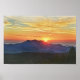 The sun rises over the front range mountains in Colorado on a July morning near the city of Golden. A layer of fog blankets Denver on the right.