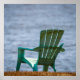 A solitary, weathered chair sits facing a vast, calm body of water. The scene evokes a sense of peace and isolation.