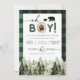 FROST Green Flannel Pine Bear Boy Baby Shower Invitation