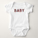 This baby one piece jumper features lumberjack themed red flannel with the word 'baby'. This baby jumpsuit is the perfect outfit for your little one's birth as a baby shower gift or makes a great gift for a mom to be.