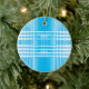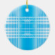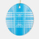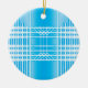 Frost ornaments. Frost is an abstract design created by Anna M. Asbury and consists of a blue and white background with lines running vertically and horizontally. Three Chalc Runes rest in the center.